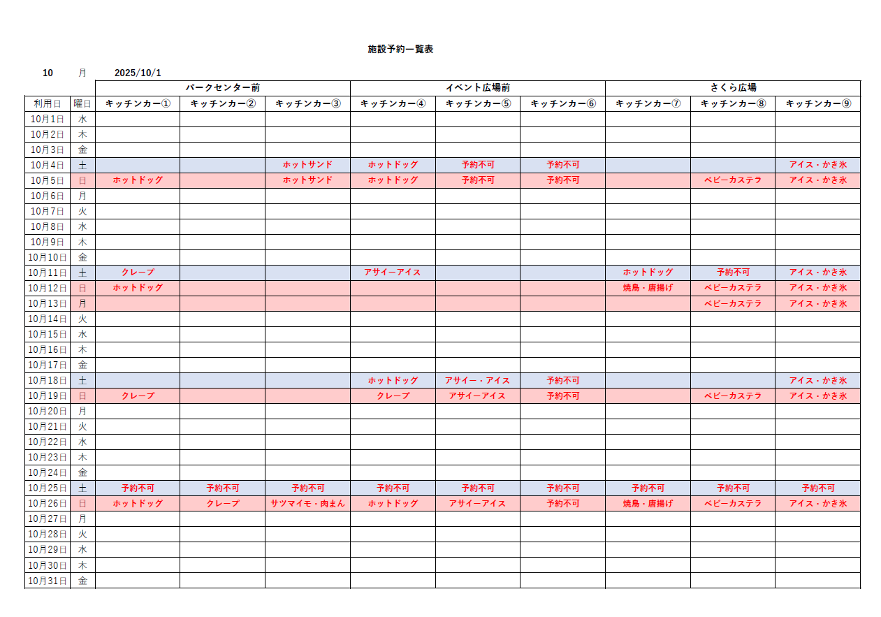 ・パークセンター前は軽トラックサイズのみ出店可能です。