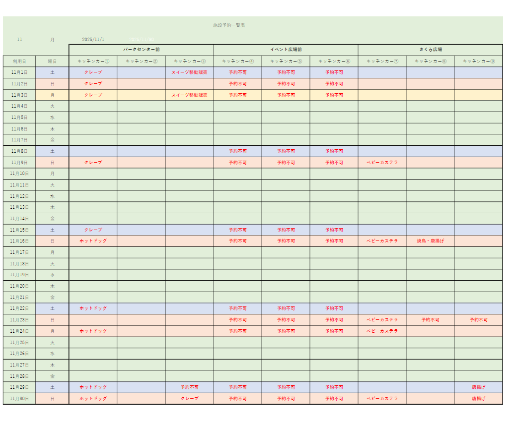 ・パークセンター前は軽トラックサイズのみ出店可能です。
