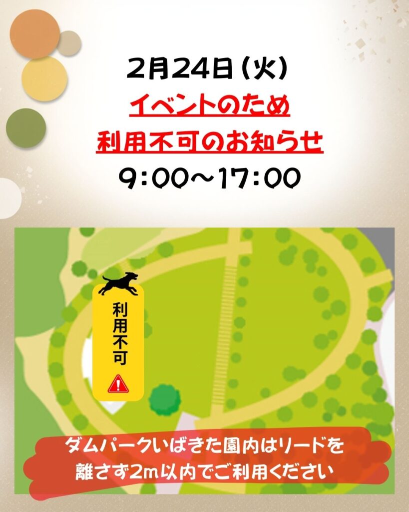 2月24日(火)イベントのため一部利用不可となります。 2026 2/02 公園からのお知らせ 2026.02.02 2月24日(火)はイベントため・イベント広場・野外ステージ・多目的室A横テラス・多目的室A がご利用いただけません。ご来園の皆様にはご不便ご迷惑をお掛けしますがご理解ご協力の程よろしくお願いいたします。 公園からのお知らせ よかったらシェアしてね! URLをコピーしました! URLをコピーしました! 駐車場ロータリー植栽工事のお知らせ