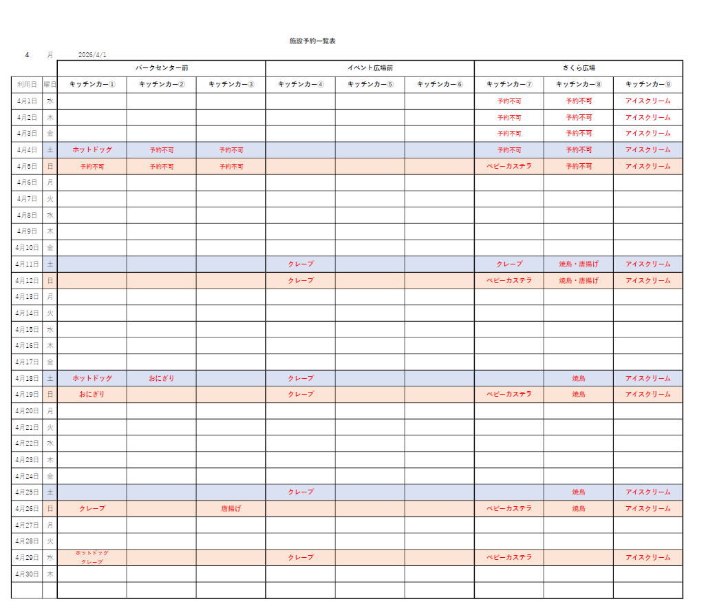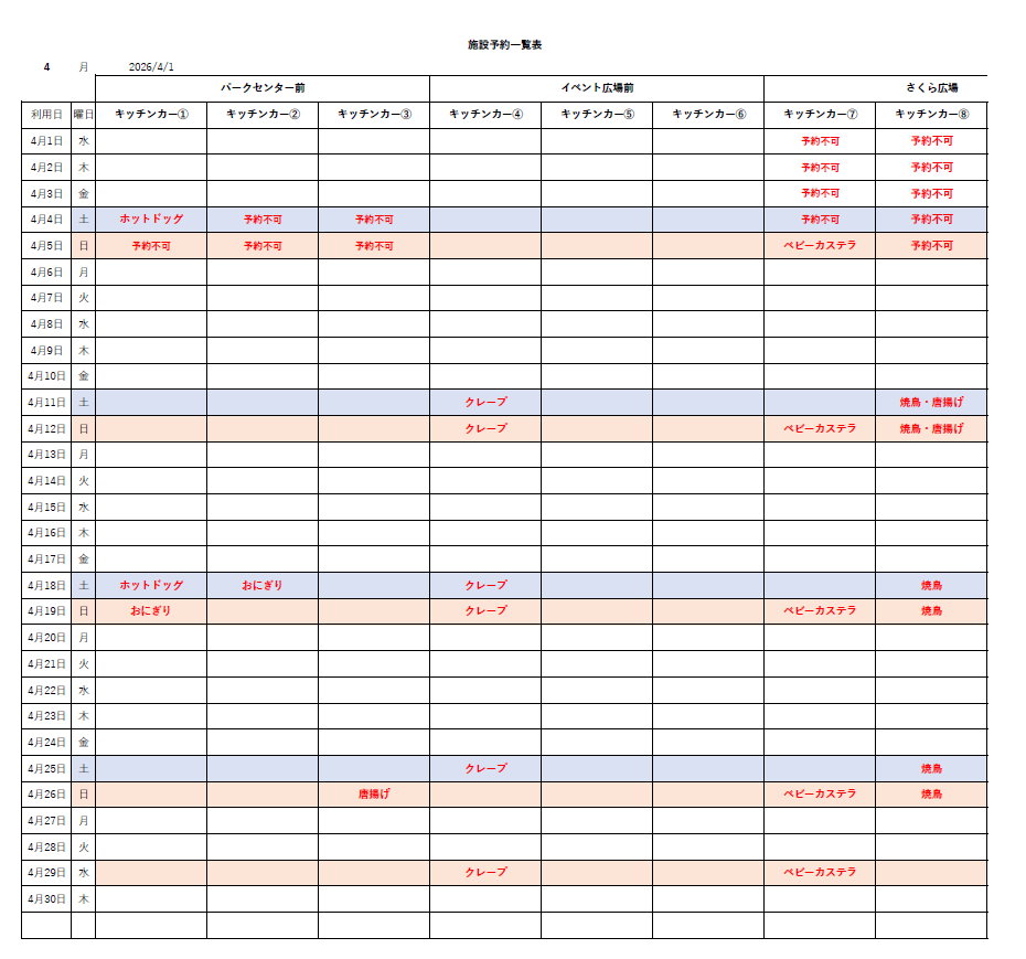 ・ダムパークいばきたの4月のキッチンカー情報です。