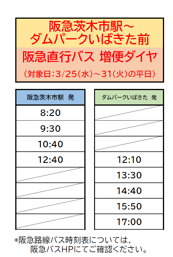 3/25(水)~3/31(火) 阪急バス増便のお知らせ
