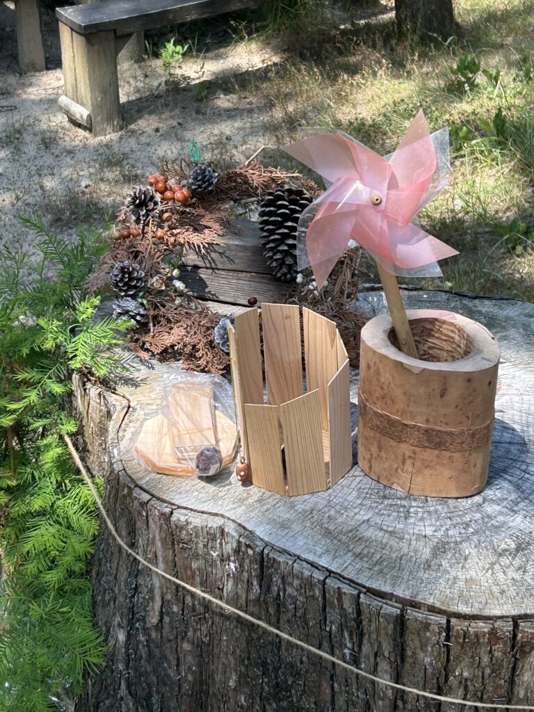 里山で採取した草木染めをした糸やその他糸を使いキーホルダーづくりにチャレンジしてもらいます。