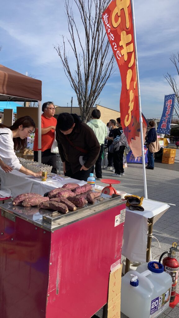 茨木市の千提寺農園で栽培収穫したねっとりした甘いサツマイモ品種である農薬不使用の紅はるかをゆっくり焼き上げます。