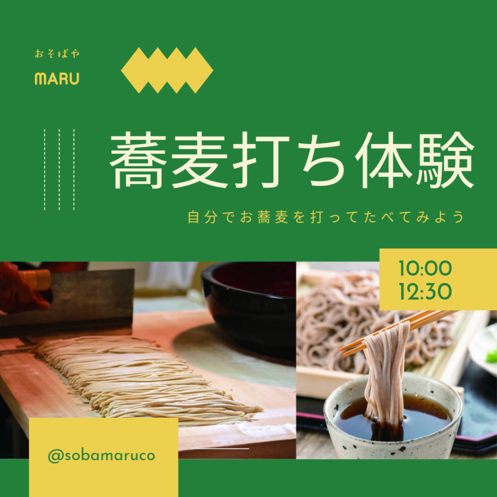 おそばやmaru蕎麦打ちを体験していただきます。お一人でも、グループでもOK。打ち立ての手打ち蕎麦の美味しさを味わって下さい。
