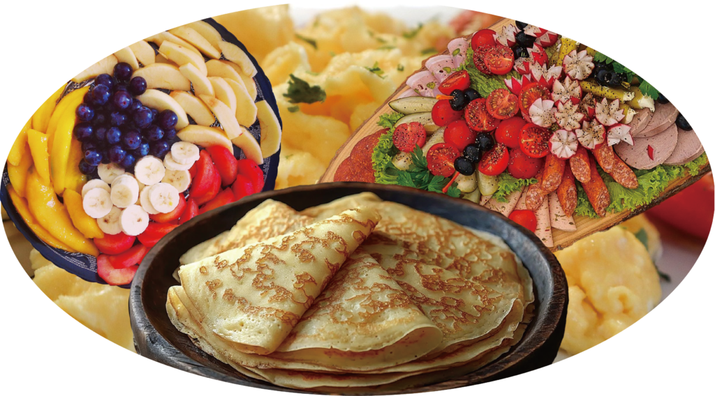 夕食はBBQ&スイーツを堪能。(アルコールは別途料金)そして、朝食はお子さまも楽しめるクレープバイキング。この機会に様々なクレープを味わってください