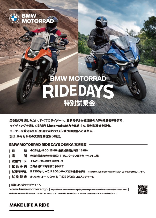 走る歓びを楽しみたい、ランディングを通じてBMW MOTORRAD の魅力を体感するイベントです。