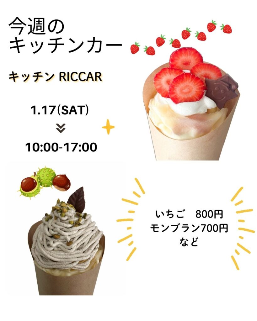 日 程:2026年1月12日(月・祝)時 間:11:00~16:00場 所:パークセンター前 雨天時:決行※中止の際はHPまたはInstagramにてお知らせします。 ダムパークいばきたでクレープを販売します!季節のフルーツや厳選されたチョコレート、独自のコンポートなど... -